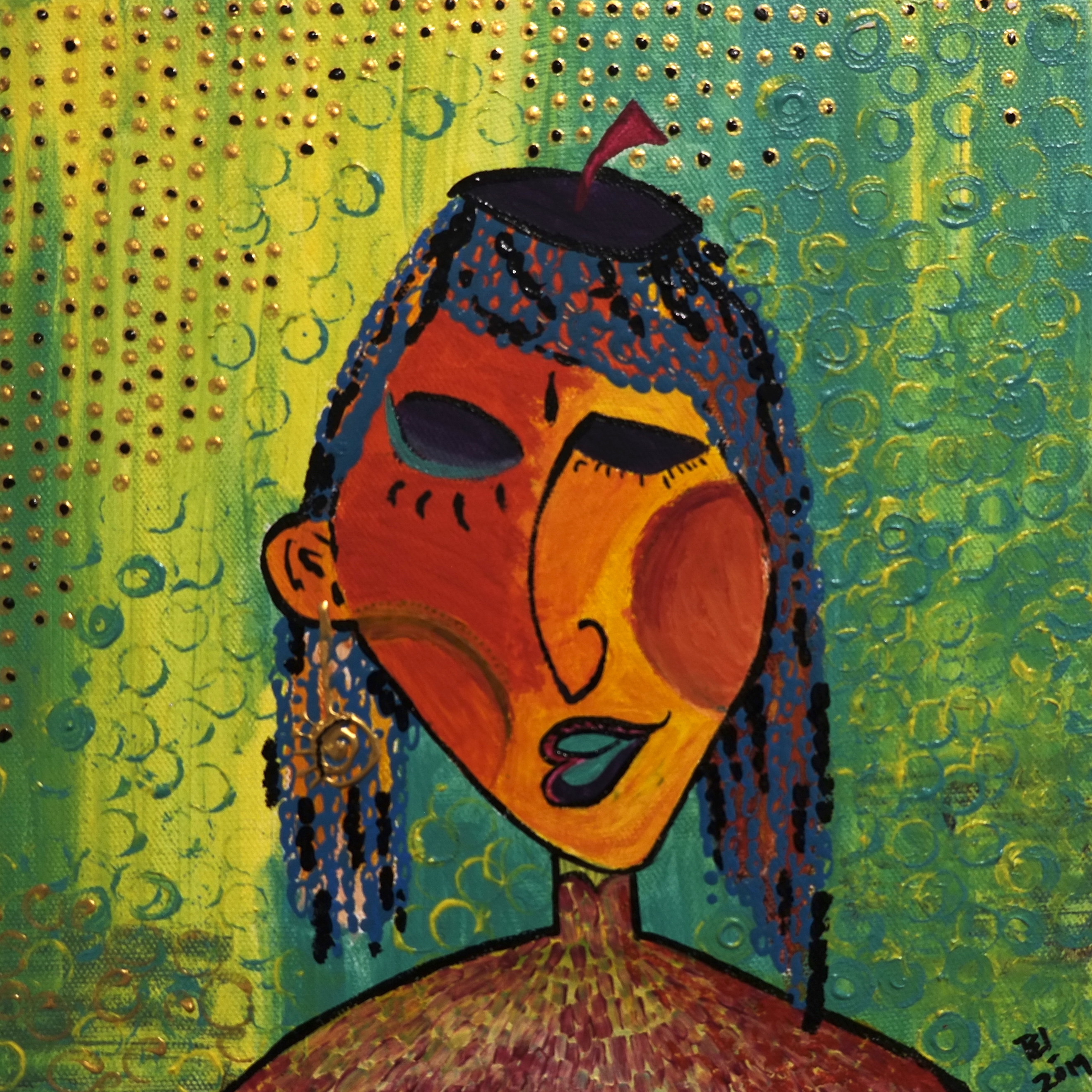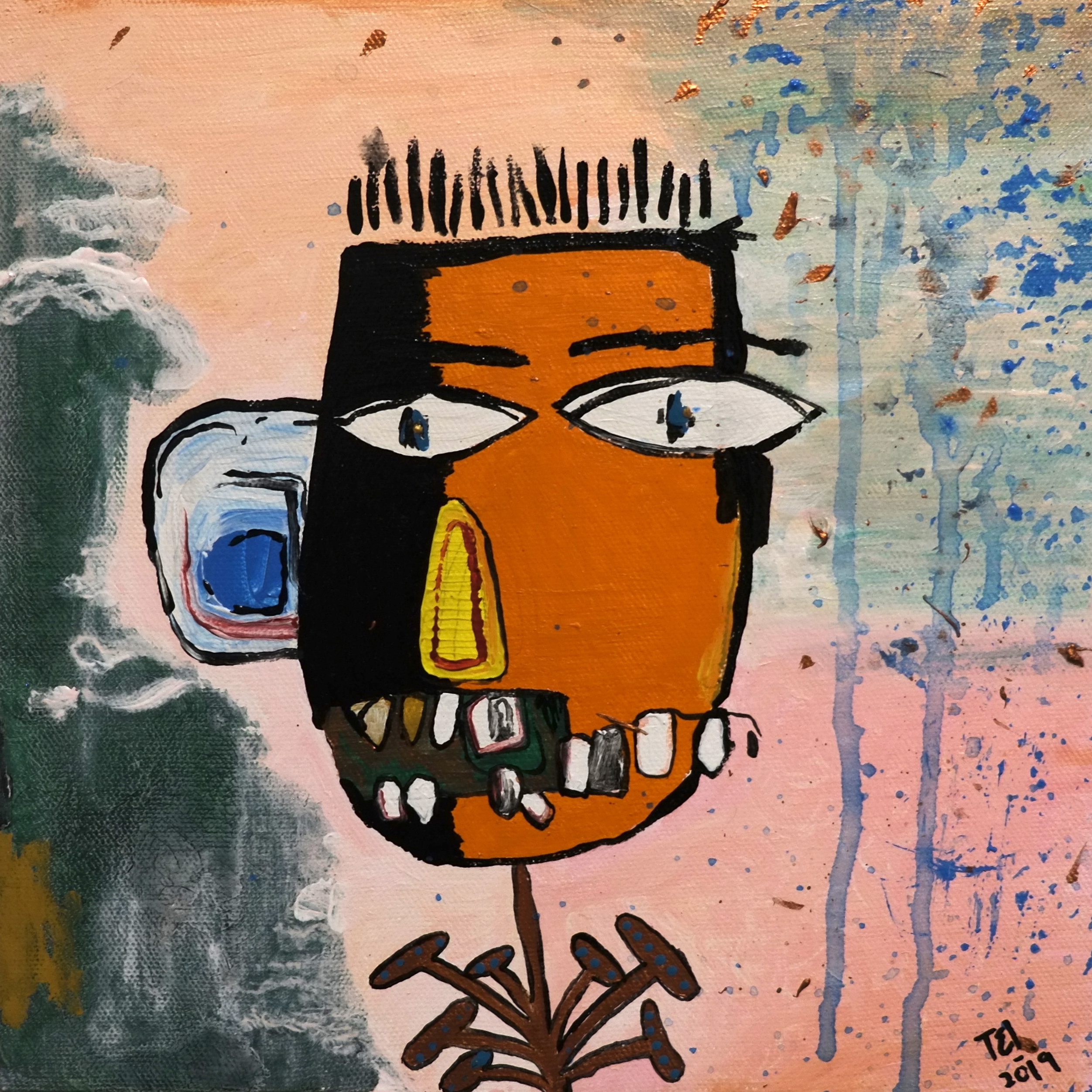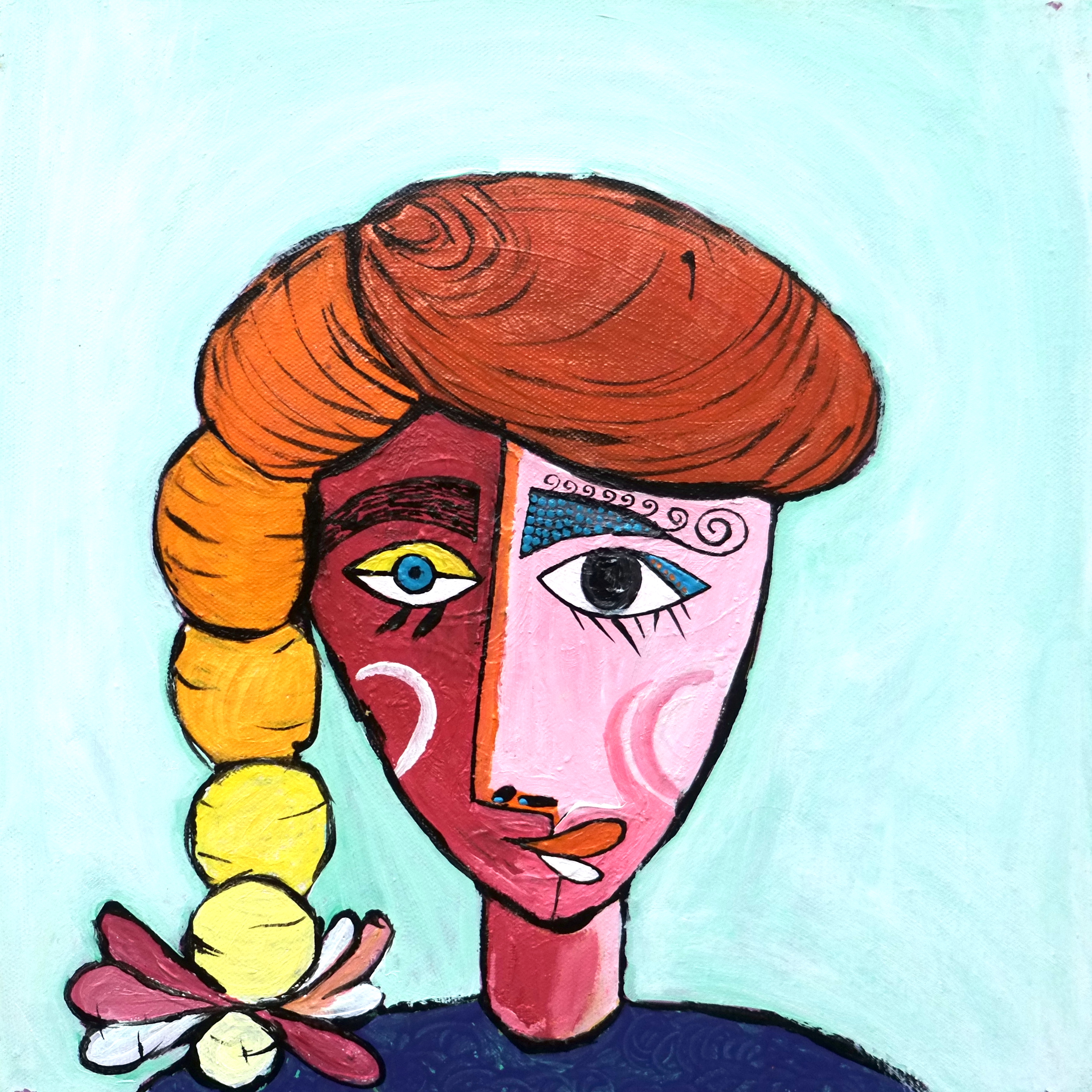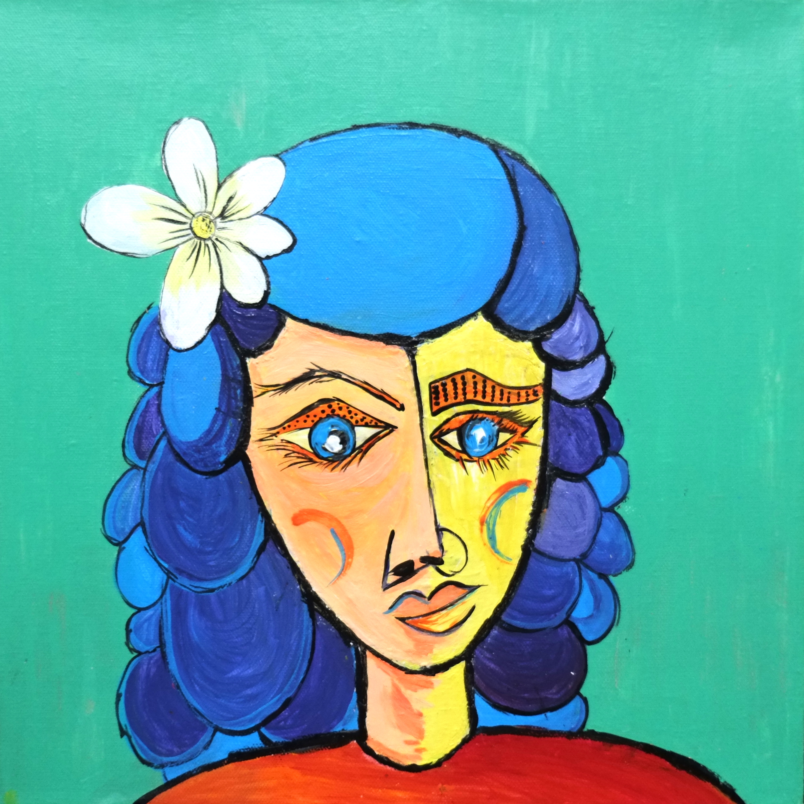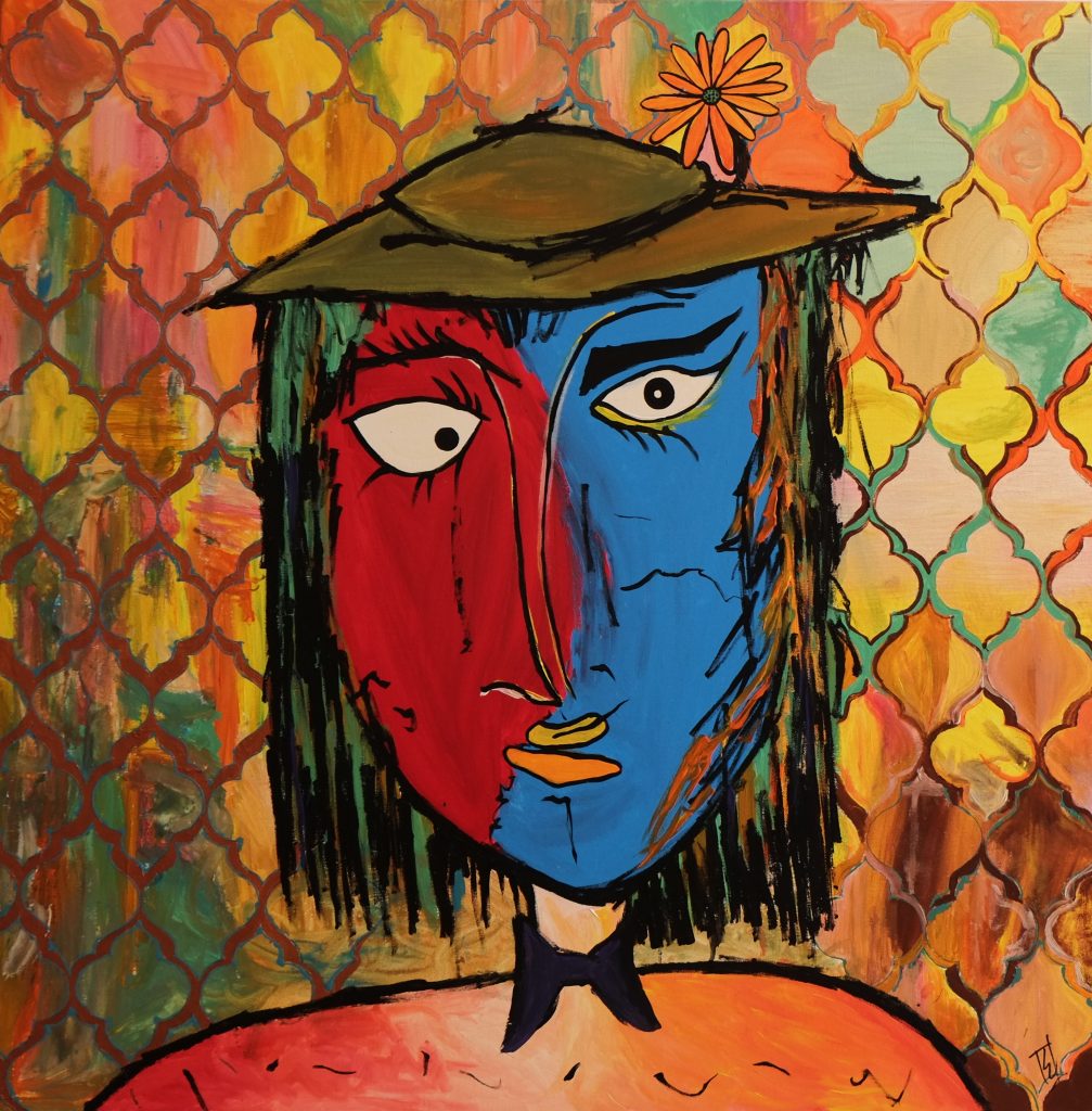 By drawing inspiration from these children, I sometimes imagine textures and imprint them on figures to show how vibrant things can be, only if you give space to imagine things that way. I’ve also drawn inspiration from Picasso’s faces, which refined some of my painting, while Basquiat’s style kept me rooted in the wild and care-free side. In terms of my color palette, David Hockney and Barbara Sansoni have influenced it.