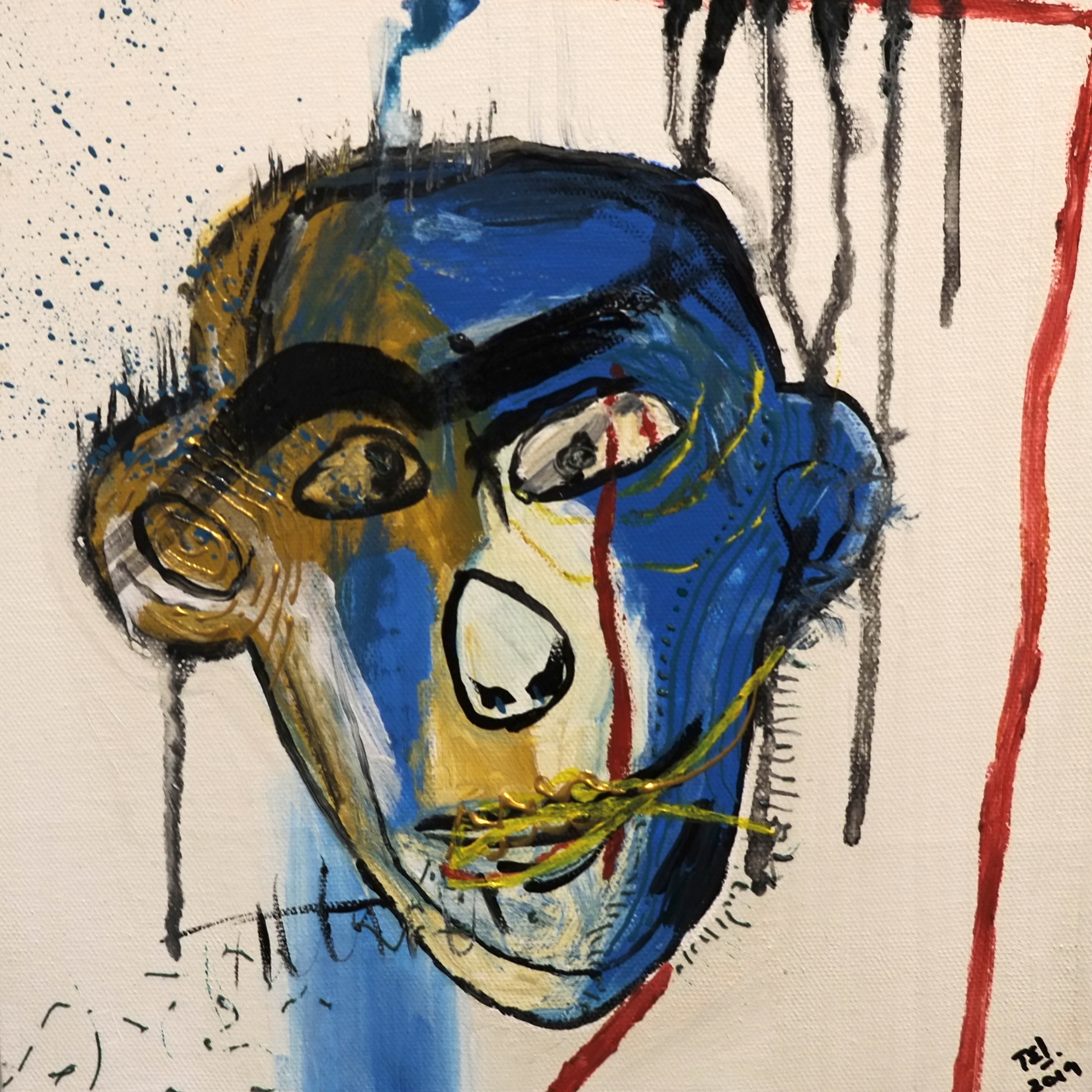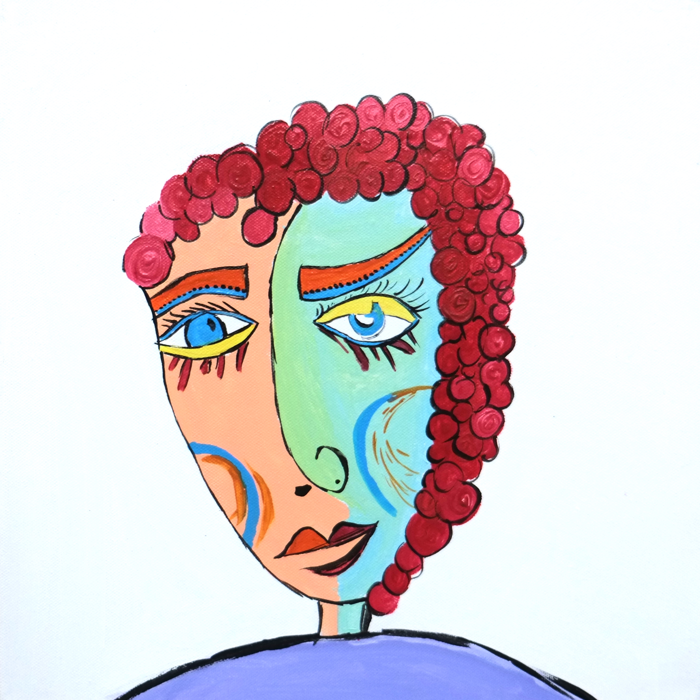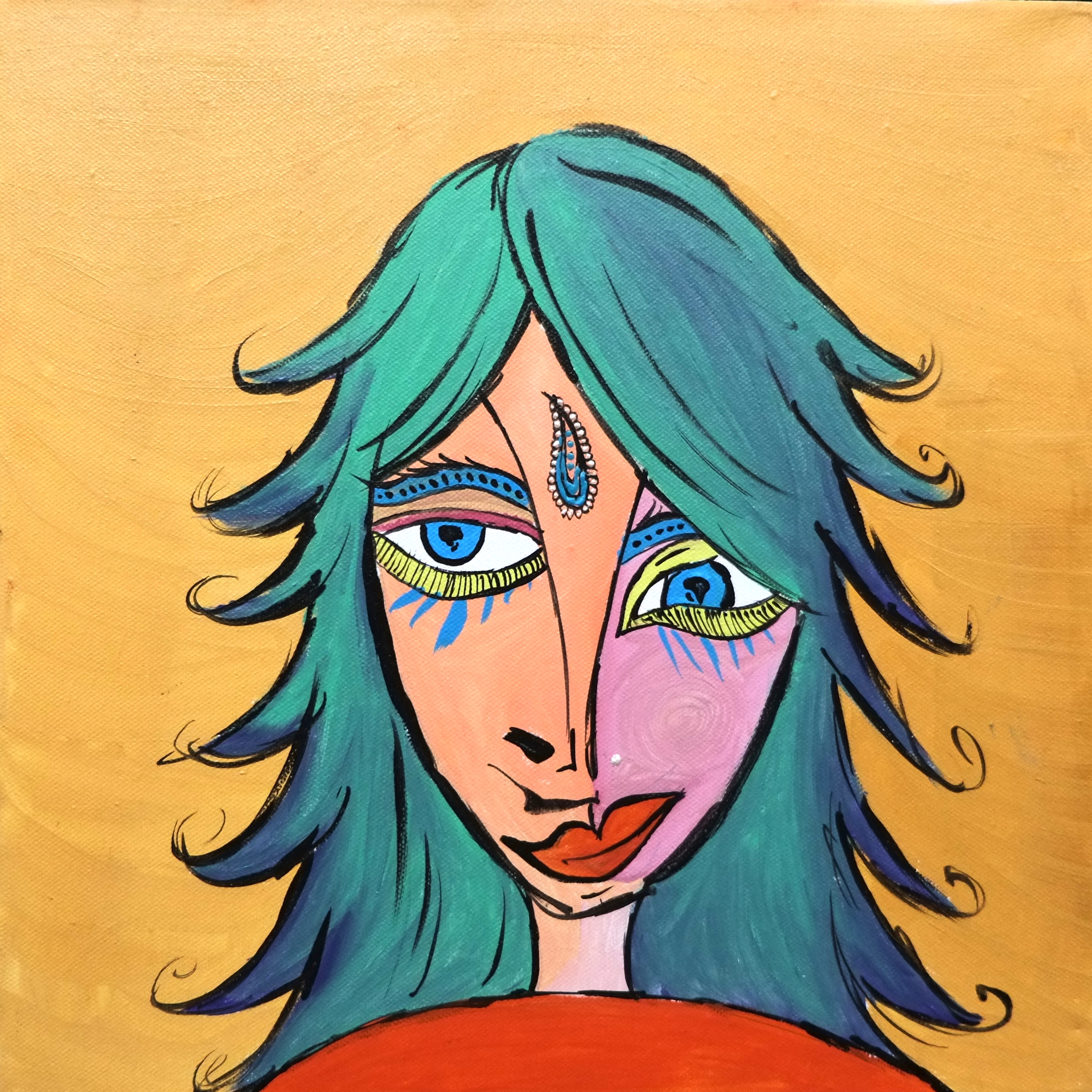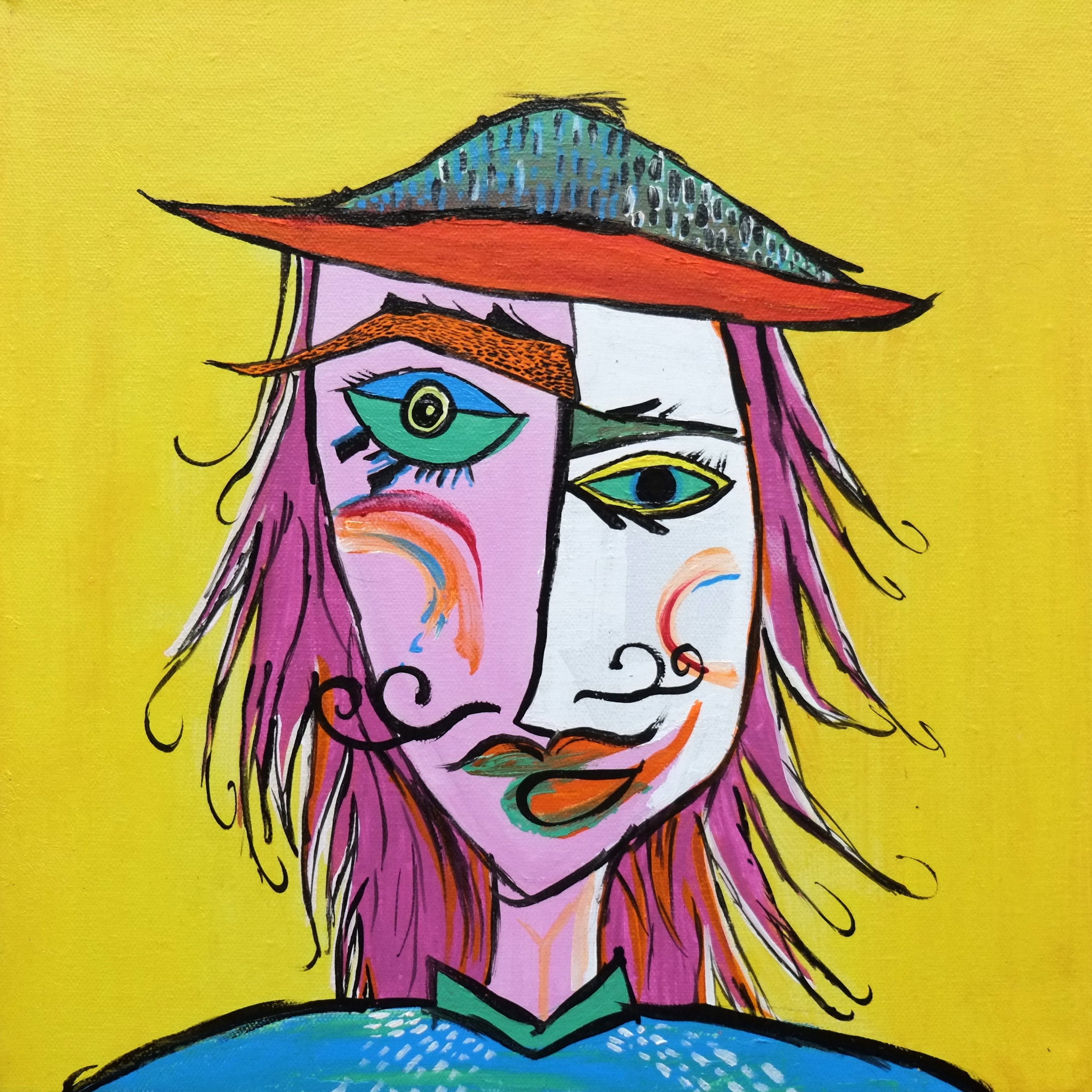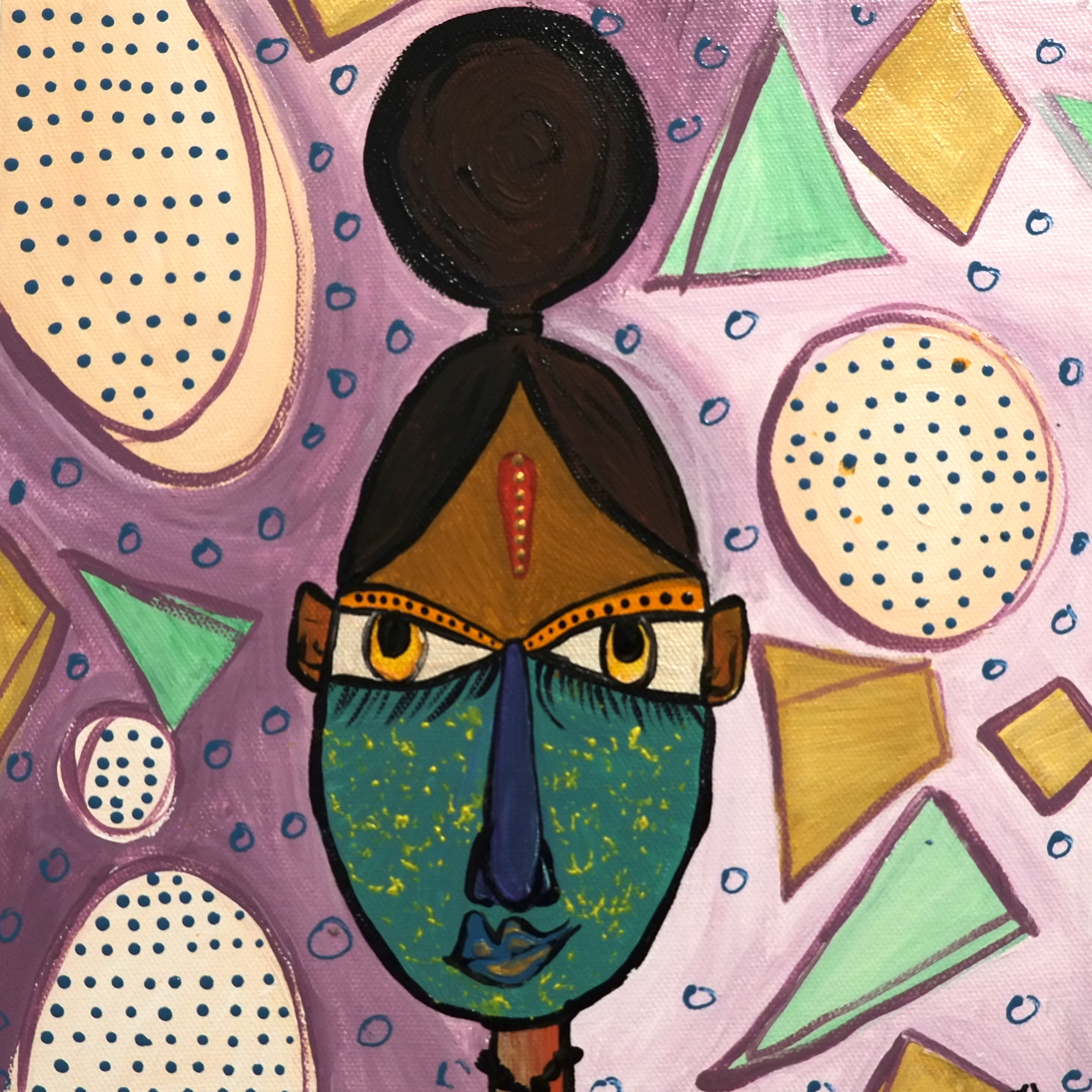By drawing inspiration from these children, I sometimes imagine textures and imprint them on figures to show how vibrant things can be, only if you give space to imagine things that way. I’ve also drawn inspiration from Picasso’s faces, which refined some of my painting, while Basquiat’s style kept me rooted in the wild and care-free side. In terms of my color palette, David Hockney and Barbara Sansoni have influenced it.
