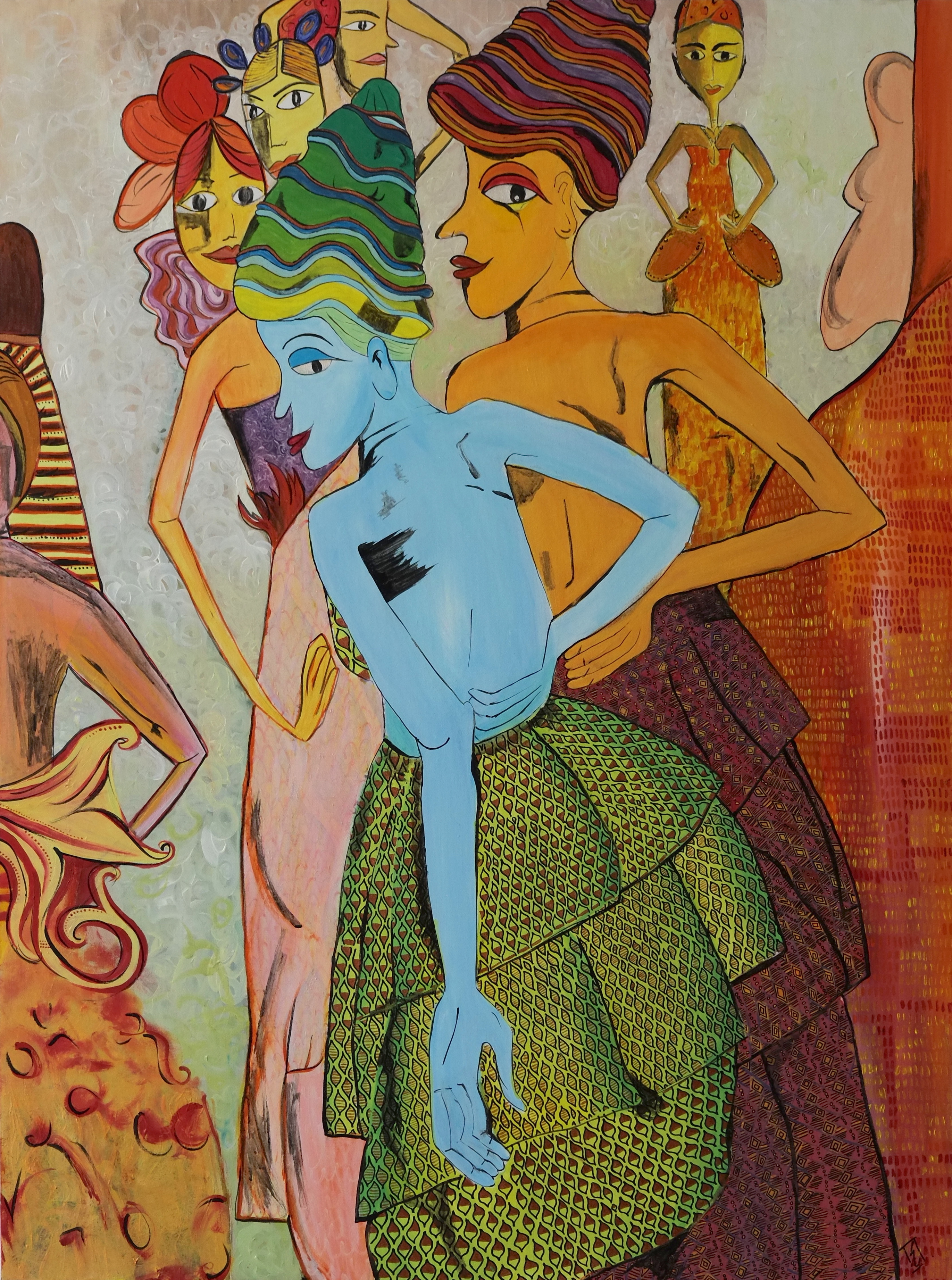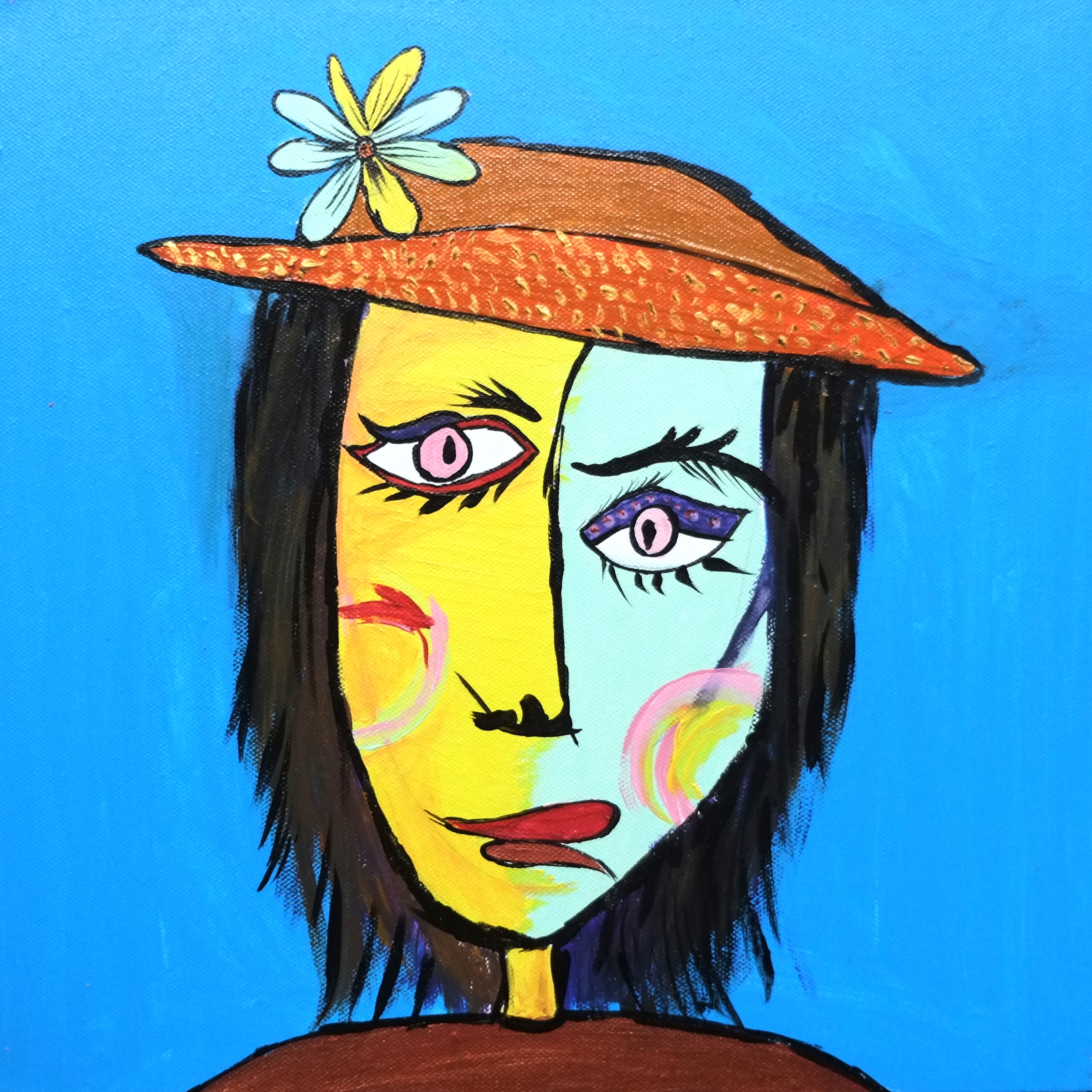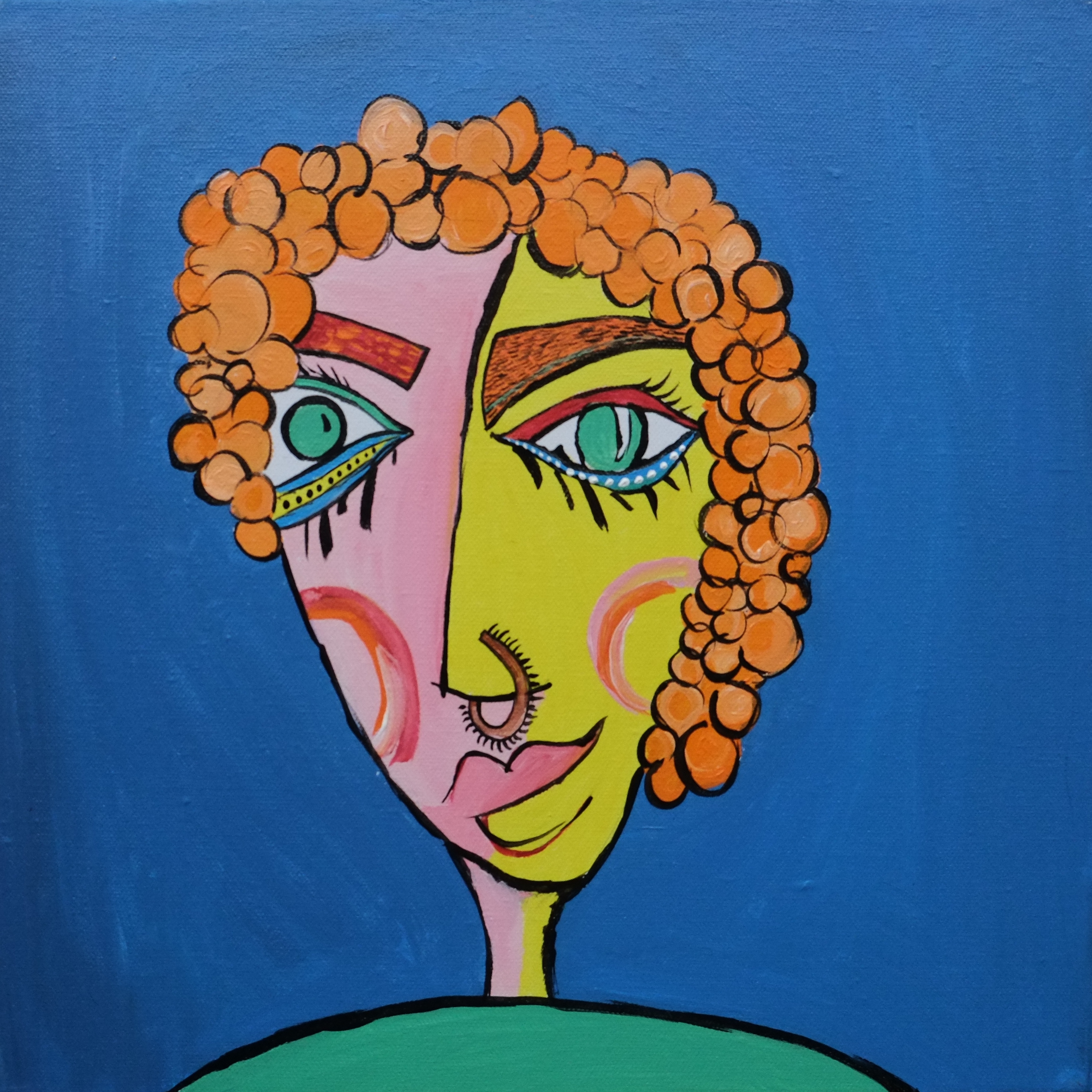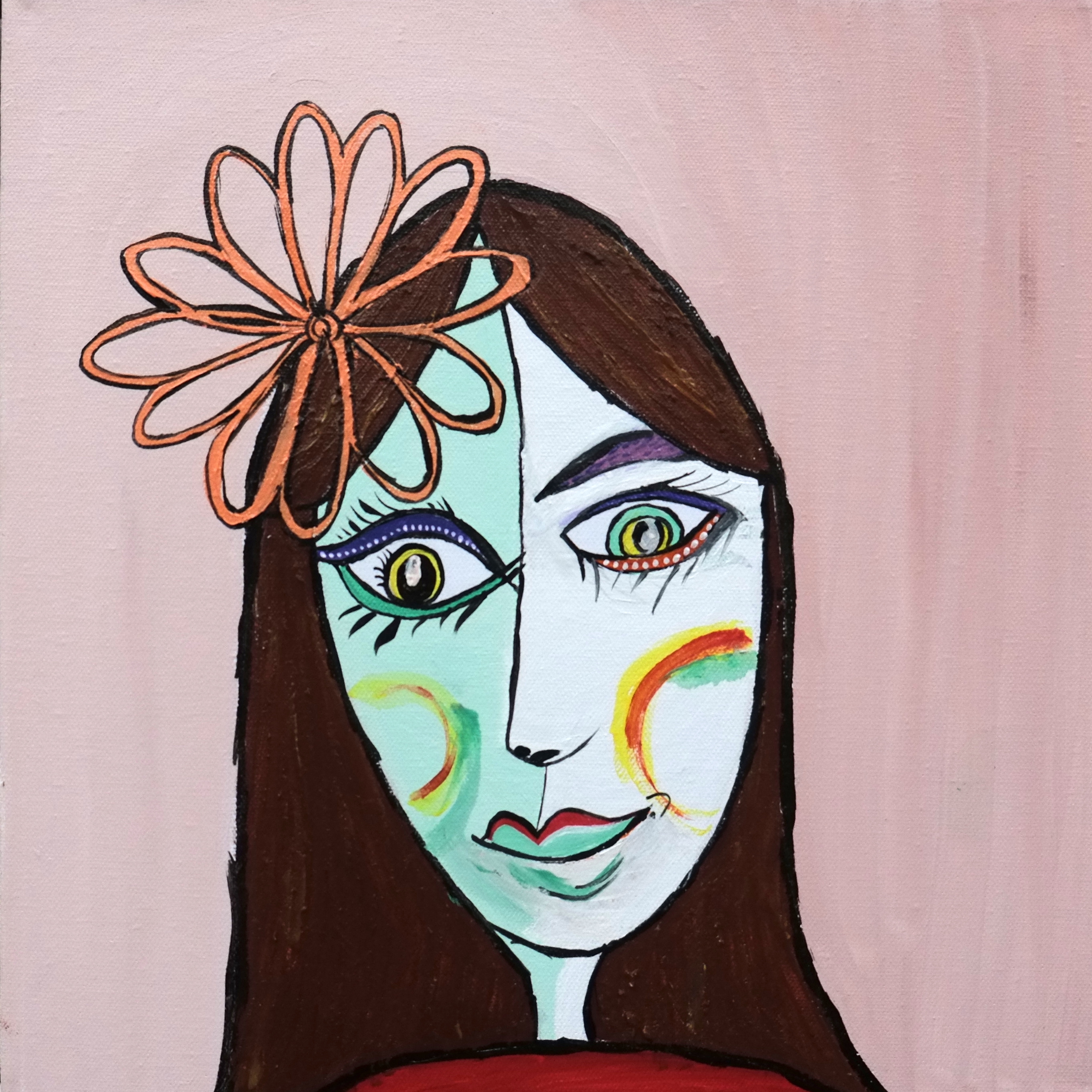 By drawing inspiration from these children, I sometimes imagine textures and imprint them on figures to show how vibrant things can be, only if you give space to imagine things that way. I’ve also drawn inspiration from Picasso’s faces, which refined some of my painting, while Basquiat’s style kept me rooted in the wild and care-free side. In terms of my color palette, David Hockney and Barbara Sansoni have influenced it.