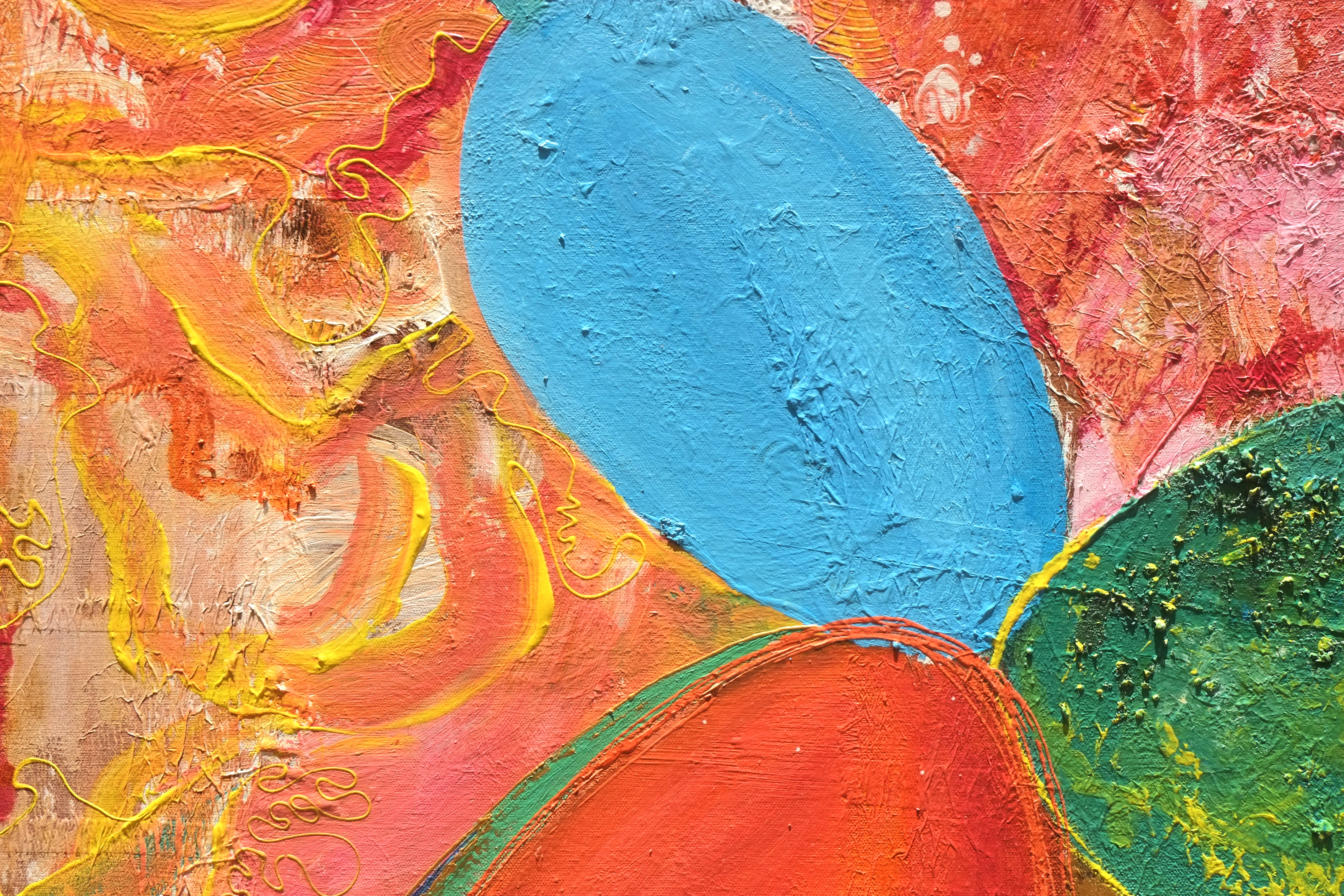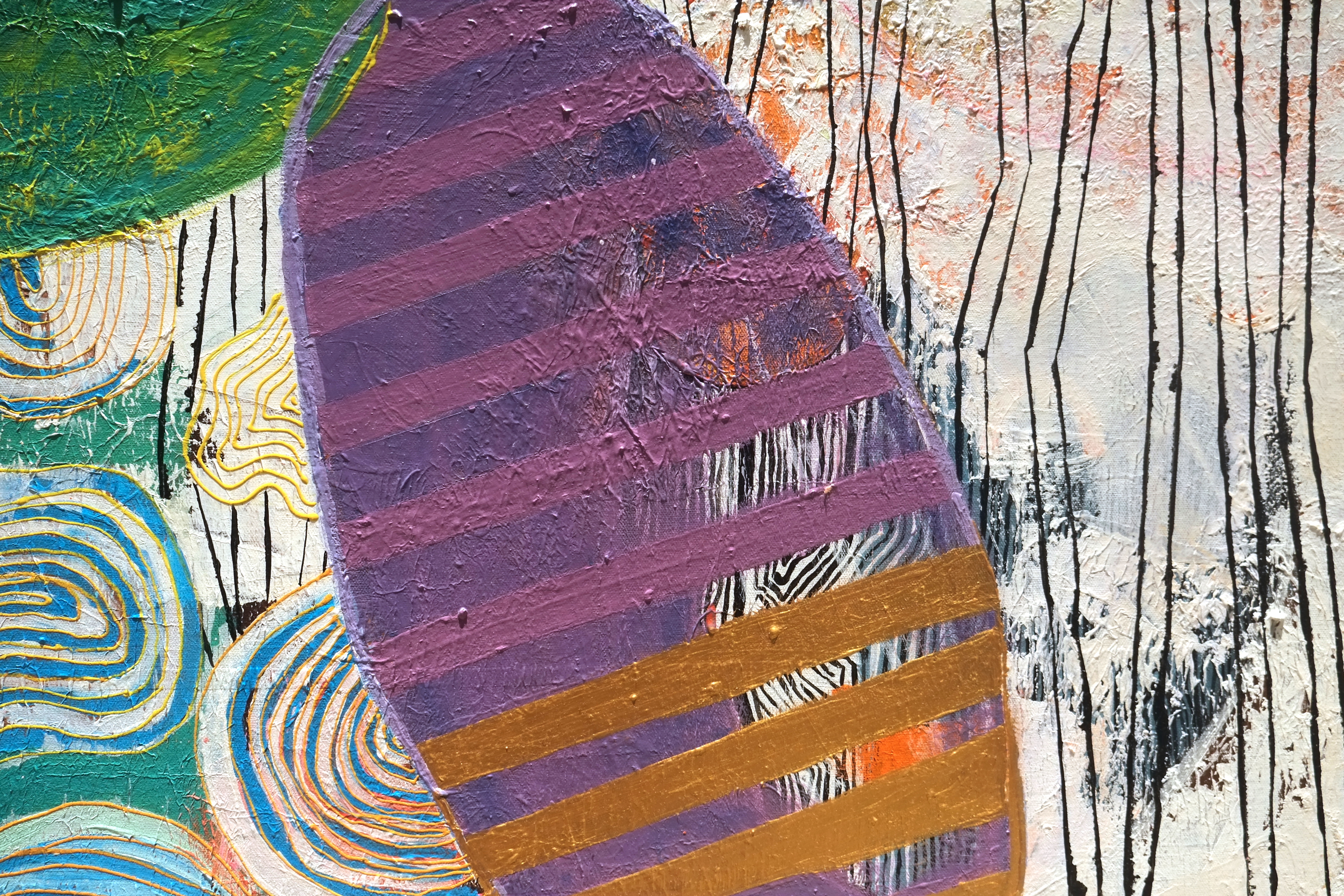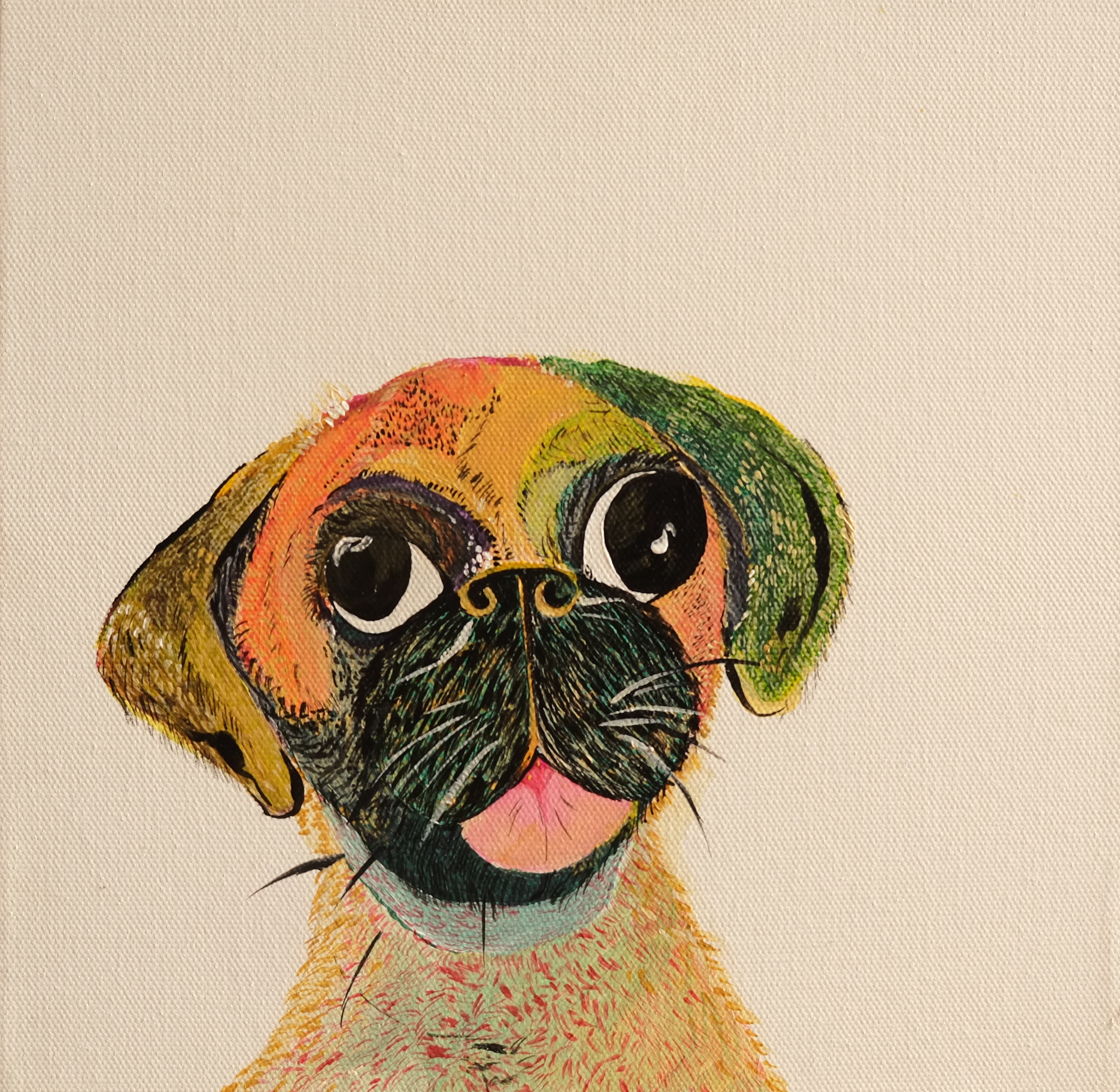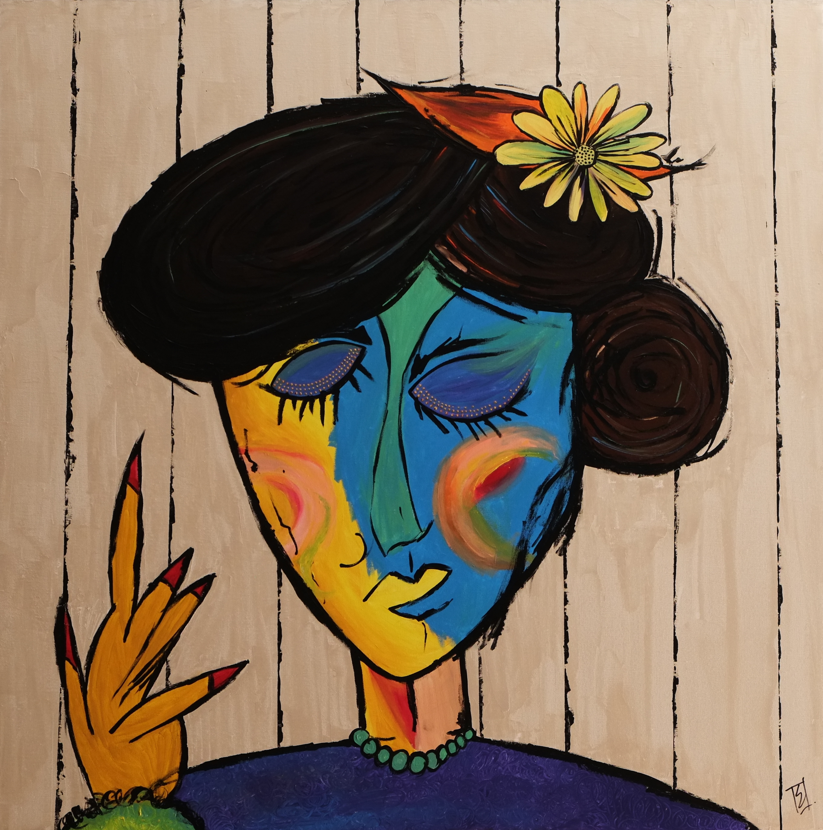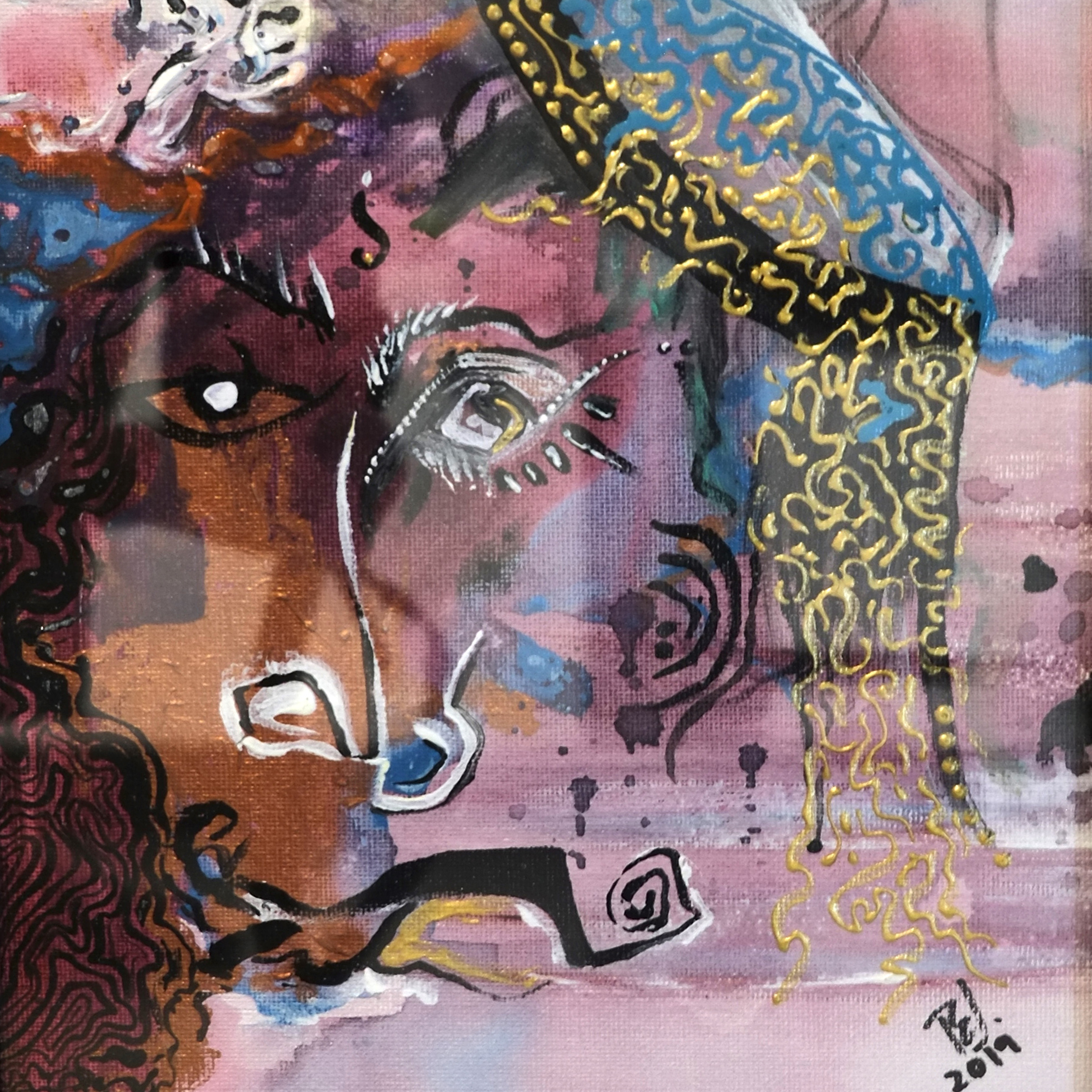 By drawing inspiration from these children, I sometimes imagine textures and imprint them on figures to show how vibrant things can be, only if you give space to imagine things that way. I’ve also drawn inspiration from Picasso’s faces, which refined some of my painting, while Basquiat’s style kept me rooted in the wild and care-free side. In terms of my color palette, David Hockney and Barbara Sansoni have influenced it.