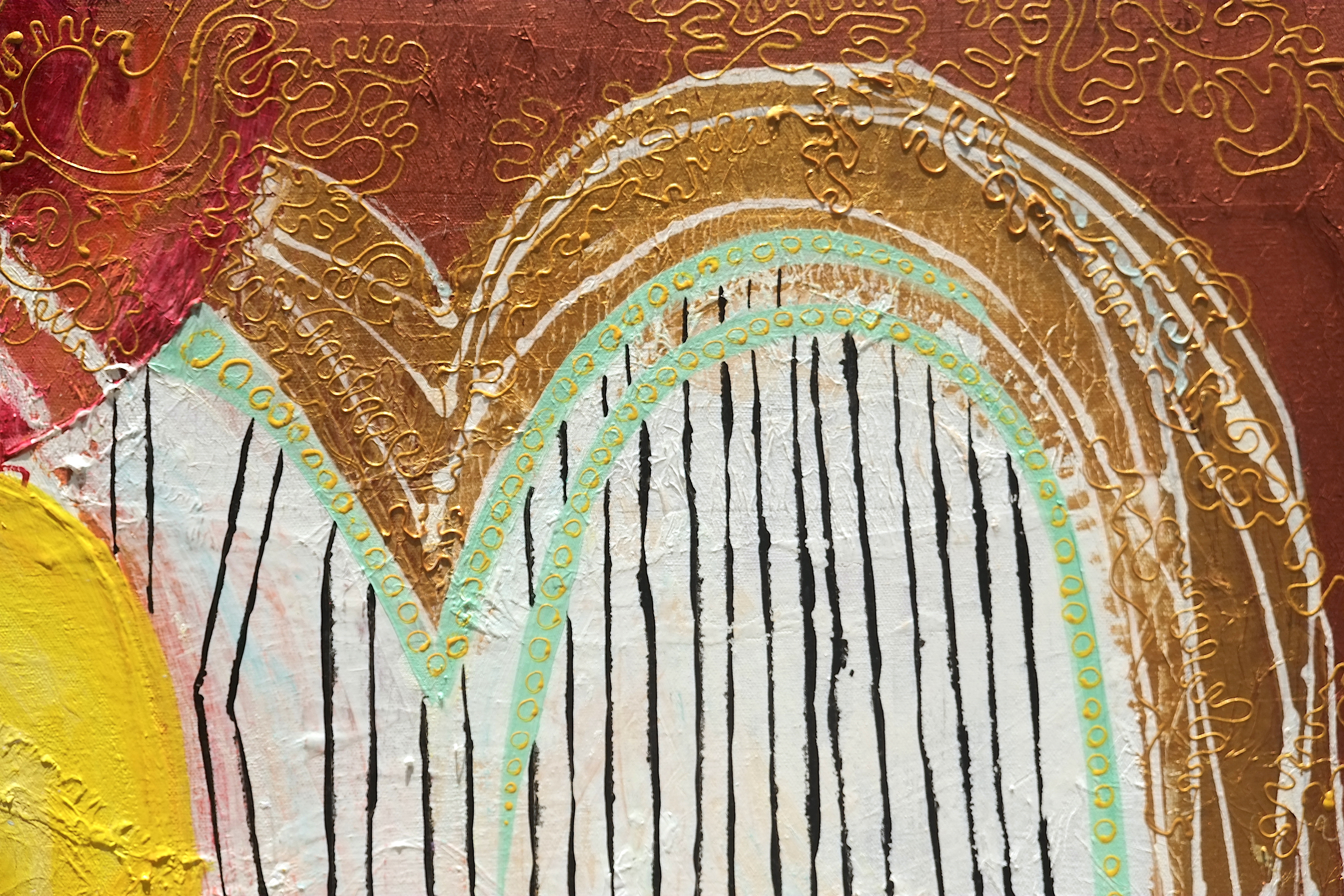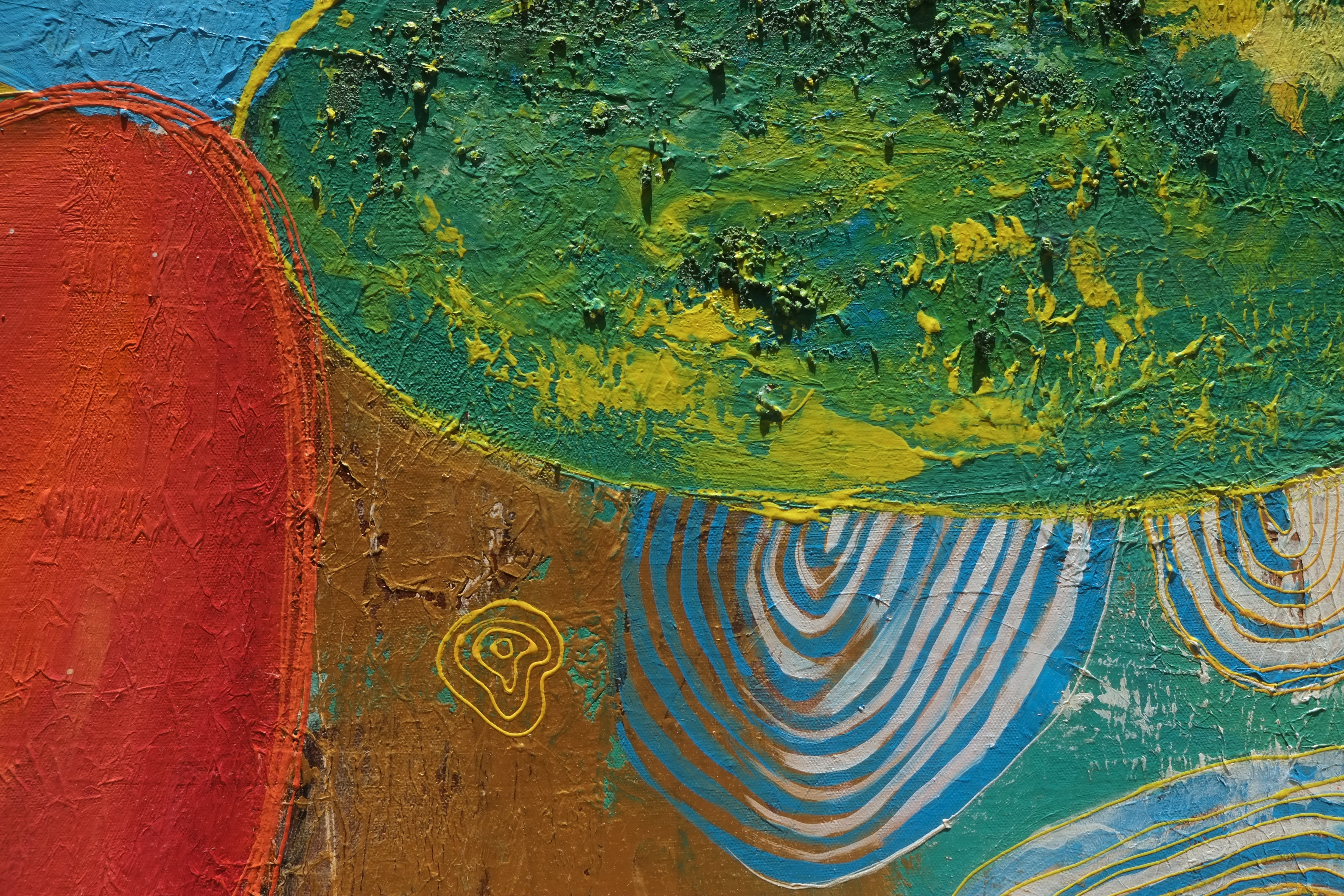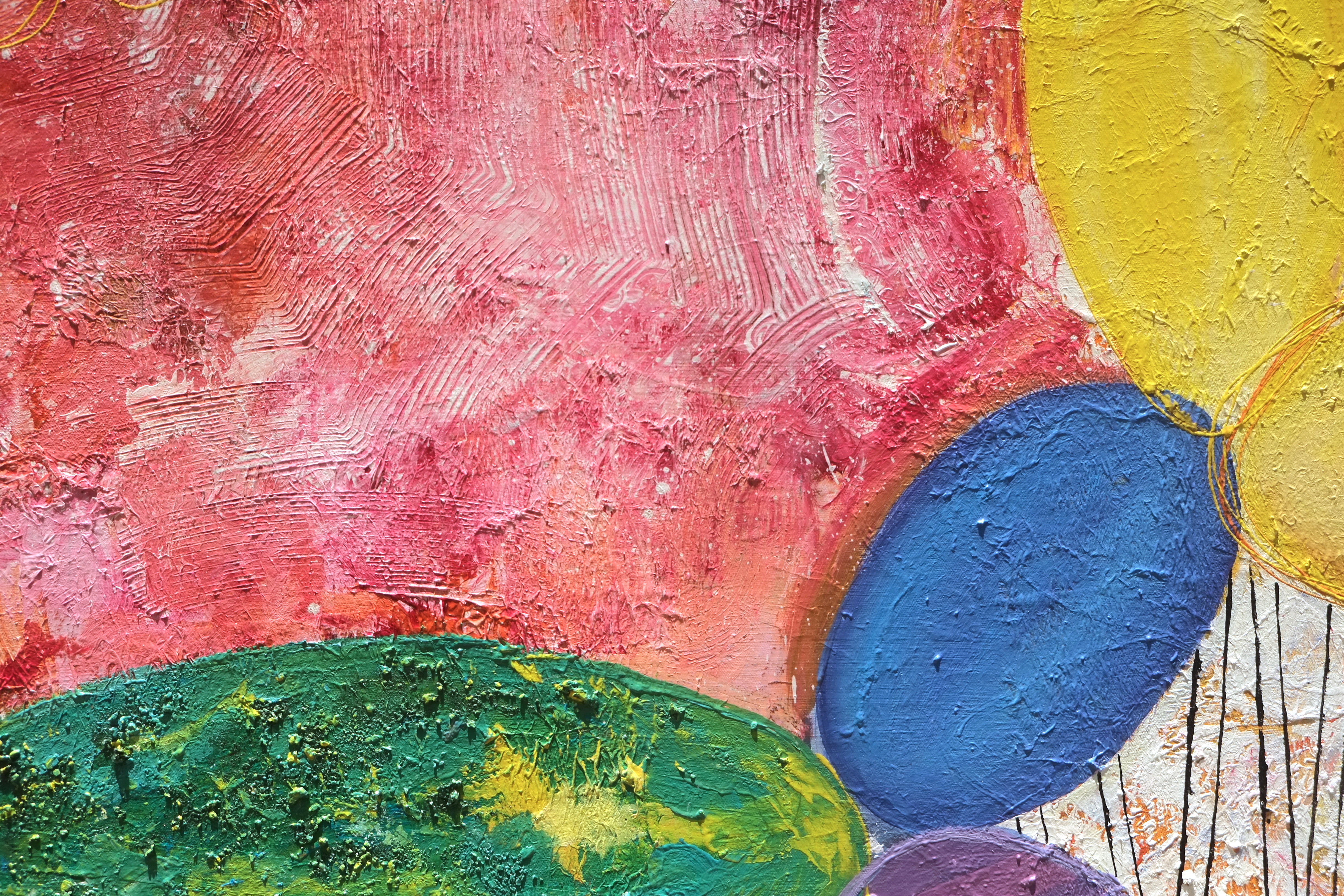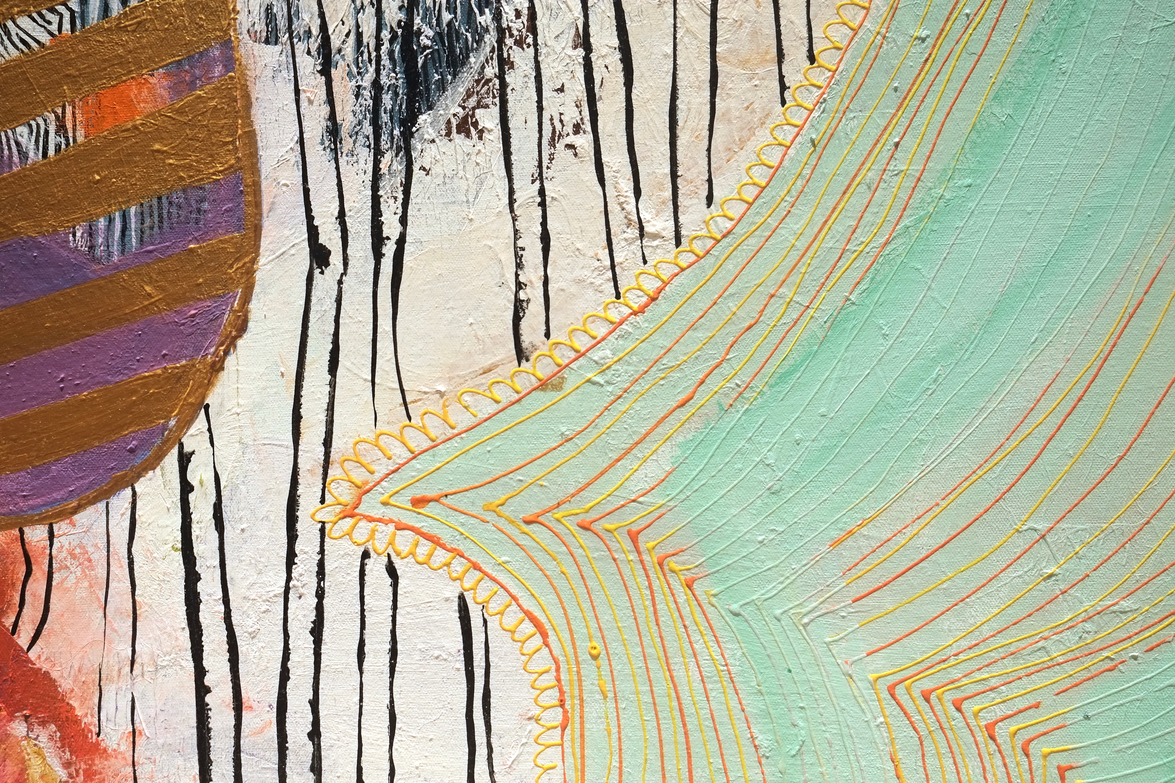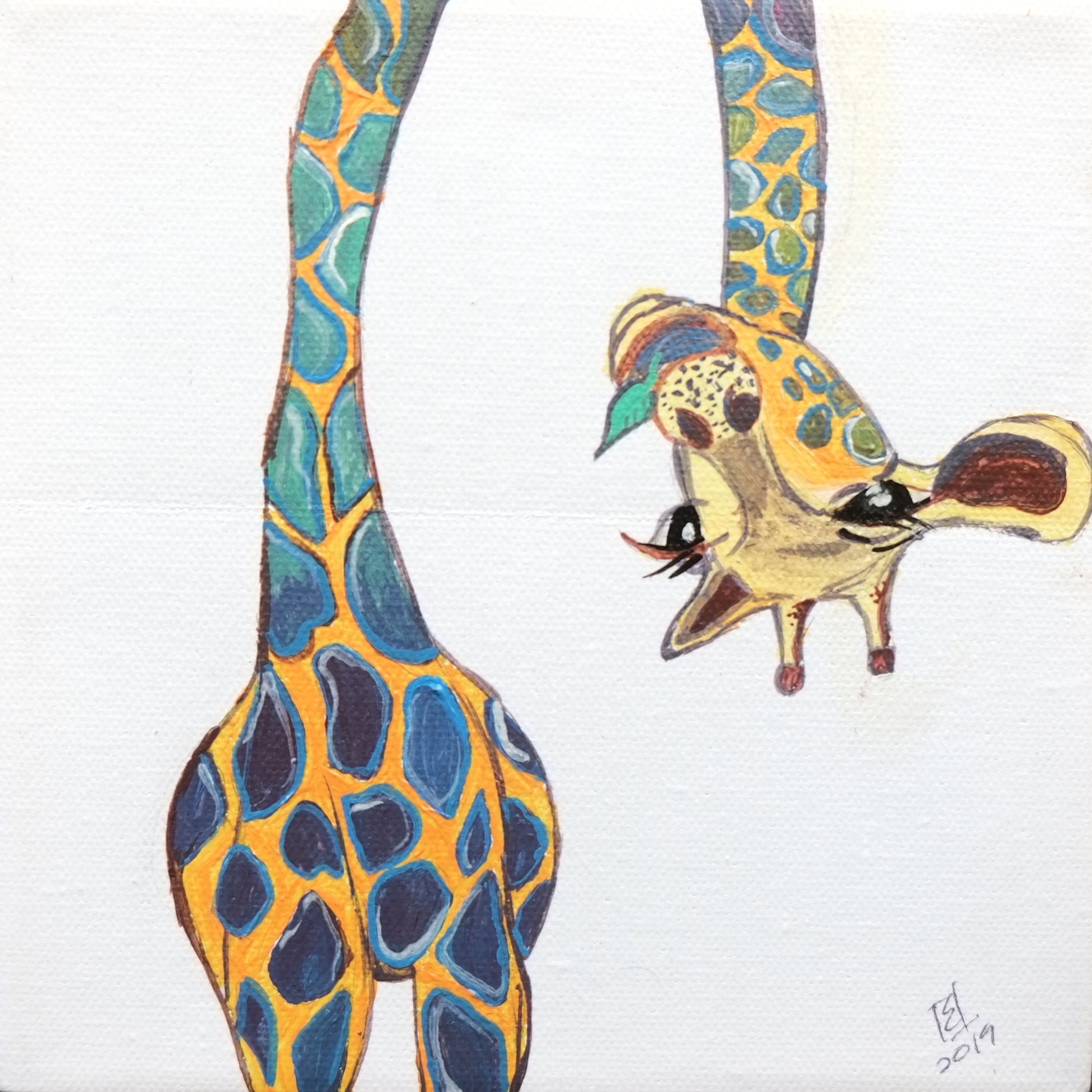 By drawing inspiration from these children, I sometimes imagine textures and imprint them on figures to show how vibrant things can be, only if you give space to imagine things that way. I’ve also drawn inspiration from Picasso’s faces, which refined some of my painting, while Basquiat’s style kept me rooted in the wild and care-free side. In terms of my color palette, David Hockney and Barbara Sansoni have influenced it.