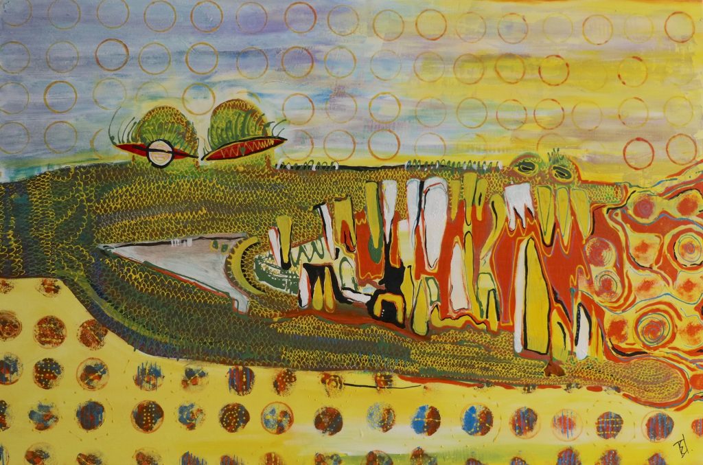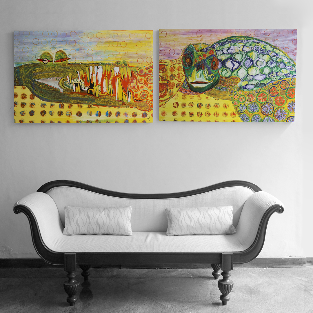 At this point in time, I was guided by Himaya Jayathilake. Up to date, she’s been the artist to inspire me the most. With her help, I was able to develop my conceptualizing and painting skills. Together, we explored how a child’s imagination is very raw and untouched to that of an adult, due to the child’s minimal exposure to society. Adults have been molded to perceiving everything through an ordinary eye, which may lack originality and creativity. A child’s imagination remains carefree, wild and limitless. The purpose of their drawings isn’t to please people, but to express their emotions and imagination. The purpose is to satisfy their own desires.