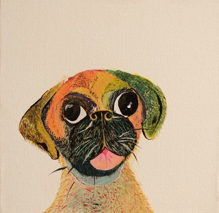 Koons have always stood by his work having no hidden meanings. Thus, this painting is a nod in his direction. While the dog symoolizes companionship to man, the vibrant colors symbolize the immeasurable joy they bring